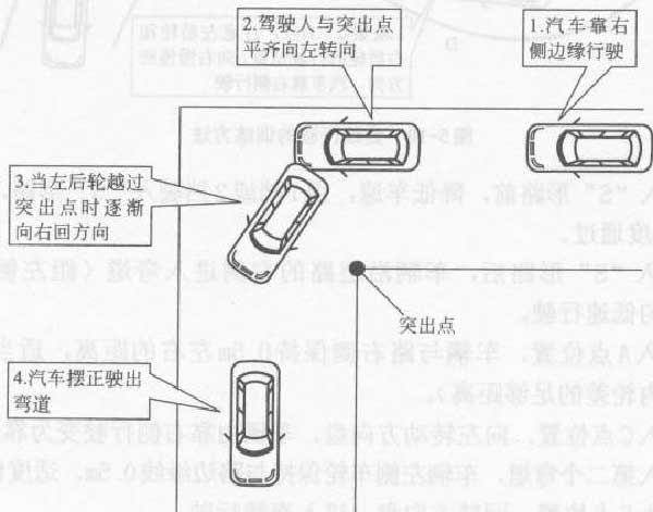 這項(xiàng)比較簡單,要注意兩點(diǎn):一是進(jìn)入直角時(shí)車身與邊線的距離,二是看準(zhǔn)點(diǎn)就打方向,要快、準(zhǔn)、狠。車速切忌過快。